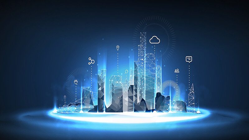 “青い光が走るデジタル背景”